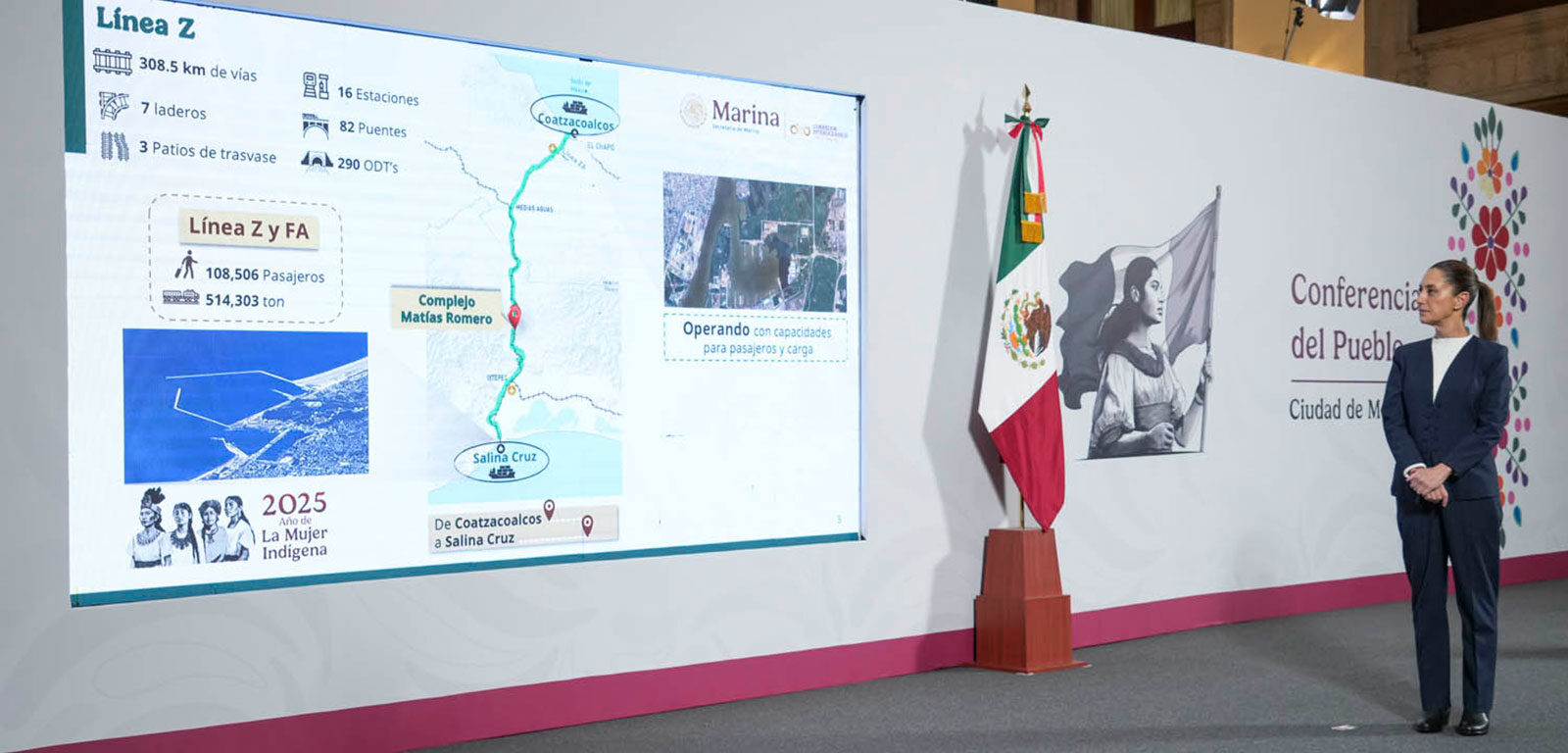 La mandataria explicó que teniendo a los puertos de Coatzacoalcos, Veracruz, y Salina Cruz, Oaxaca, como nodos claves del proyecto; su operación a plena capacidad permitirá mejorar la infraestructura ferroviaria y aumentar la movilidad de carga, misma que se extenderá hacia la península de Yucatán o incluso con una futura conexión con Guatemala, además del uso del tren de pasajeros.