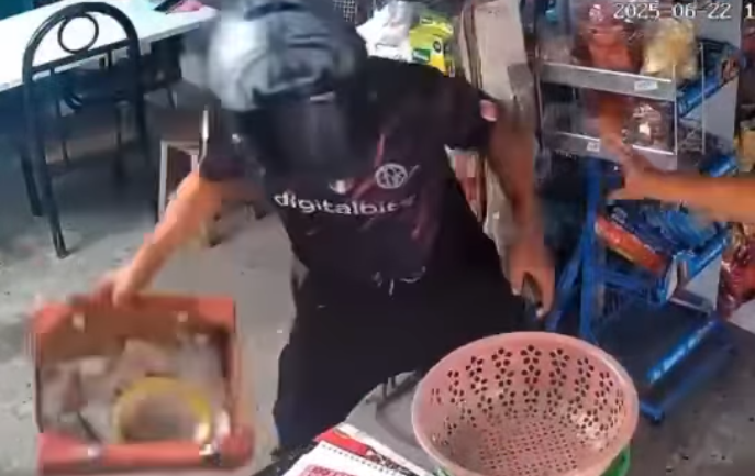Todo quedó captado en las cámaras de video, donde se observa que un hombre baja de una motocicleta, ingresa al establecimiento ubicado en la avenida 41 y calle 28, se hace pasar por un cliente, para después sacar un arma de fuego y agredir a la encargada del lugar y finalmente llevarse la caja con las ventas del día y huir.