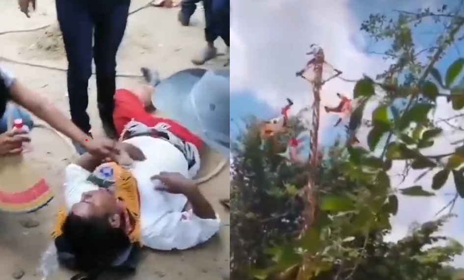 Todo quedó grabado en video, en donde se observa como el palo se parte y enseguida cae con todo y los danzantes de más de diez metros de altura.
