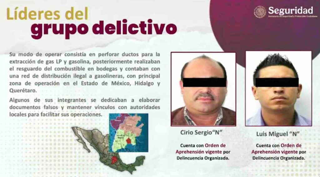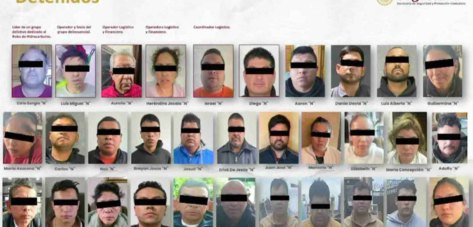 Fueron detenidas 32 personas de este grupo delictivo, incluyendo sus principales líderes: Cirio Sergio “N” y Luis Miguel “N”, quienes coordinaban la extracción y distribución del combustible.
