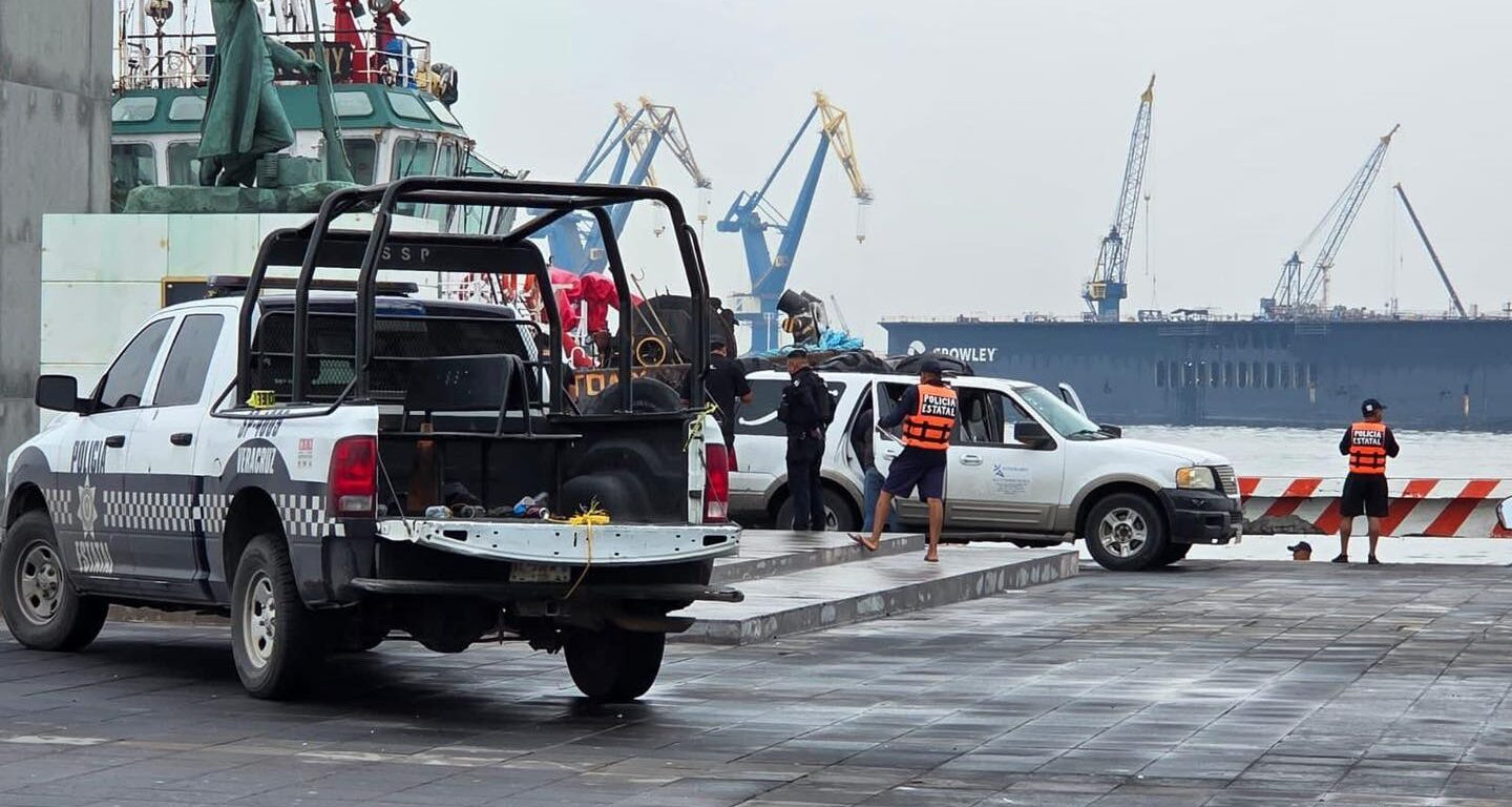Tras varias horas sumergido en el mar a la altura del muelle de la T, fue extraído una camioneta de la marca Nissan tipo Altima de color gris, en el que fallecieron 2 personas.