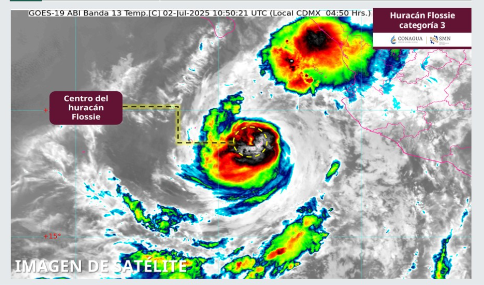 El huracán “Flossie”, todavía de categoría 3 en la escala Saffir-Simpson, se desplazará al oeste de las costas de Jalisco mientras se debilita gradualmente, informó la mañana de este 2 de julio el Servicio Meteorológico Nacional (SMN).