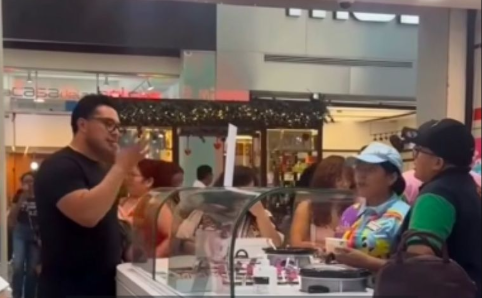 Un hombre desató una polémica en redes sociales tras ser captado en video mientras discutía fuertemente con empleadas de una heladería .