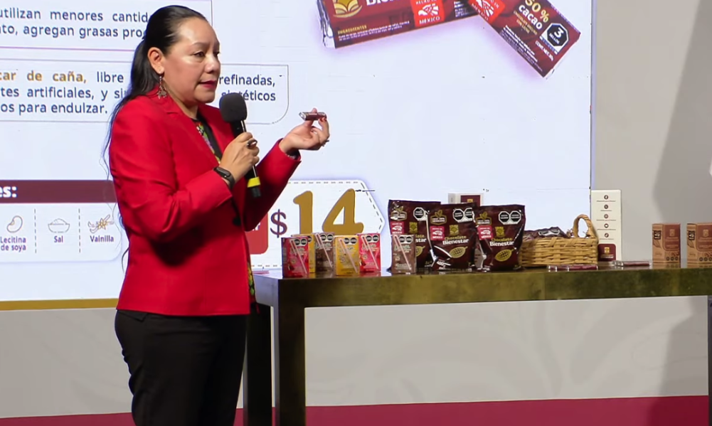 “La barra es que esta en $14 pesos, y es un excelente chocolate de exportación pero que estamos trabajando de manera directa la compra $14 en todas las tiendas bienestar3