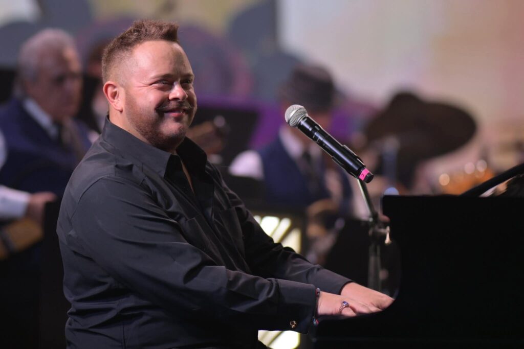 Uno de los momentos más emotivos de la noche fue la interpretación de Nuestro juramento, del “ruiseñor de América”, Julio Jaramillo, en voz de su hijo Julián y su nieto Julio, como homenaje a la gobernadora Rocío Nahle García.