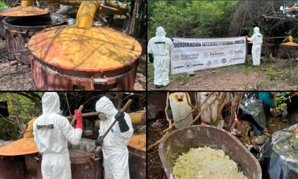 Ciudad de México a 17 de julio de 2025.– Elementos de la Secretaría de Marina (Semar) a través de la Armada de México, en coordinación con Secretaría de la Defensa Nacional (Defensa), Fiscalía General de la República (FGR), Guardia Nacional (GN) y Secretaría de Seguridad y Protección Ciudadana (SSPC) localizaron y neutralizaron un laboratorio clandestino empleado para la elaboración de sustancias ilícitas, en el poblado de Abuya, en el municipio de Culiacán, Sinaloa.
