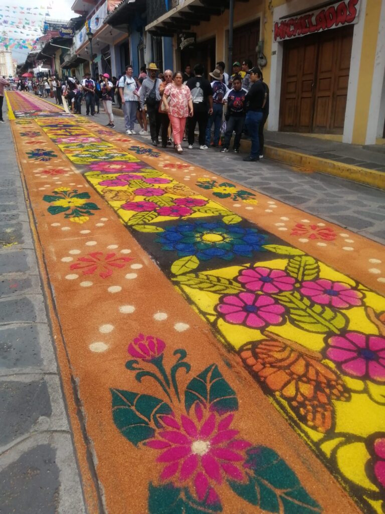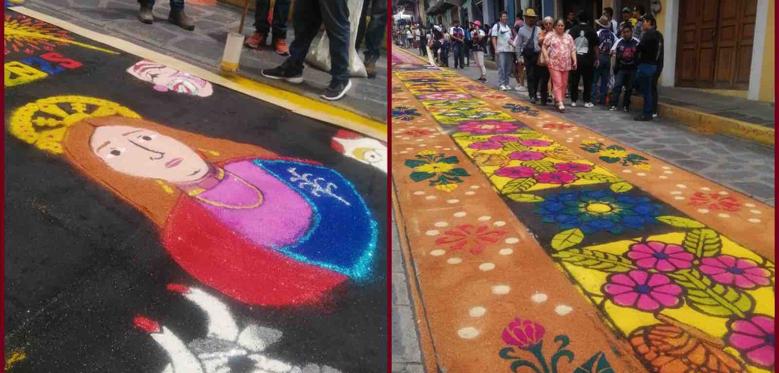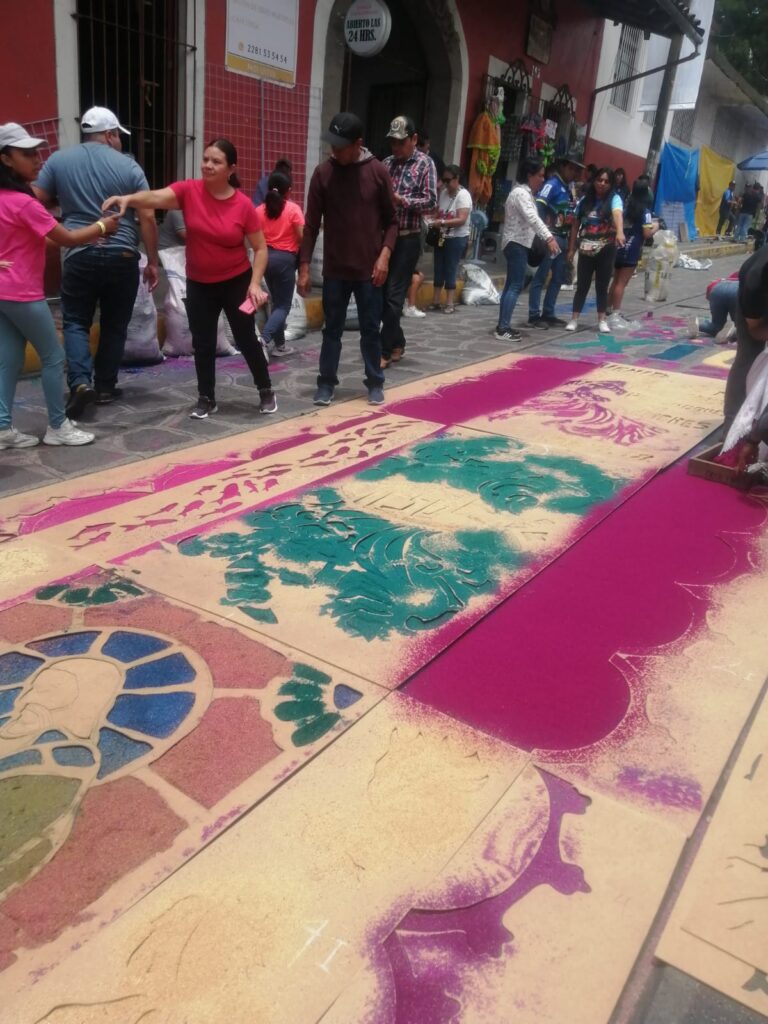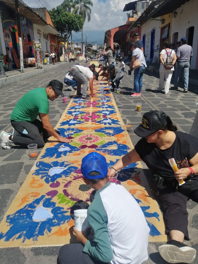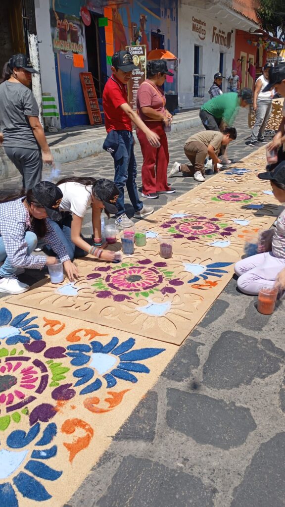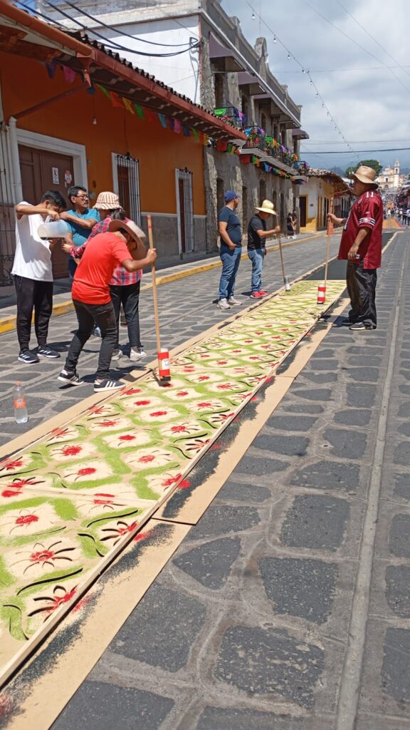 Como ya es una tradición año con año, los habitantes del municipio de Xico, desde muy temprana hora se congregaron para realizar la famosa alfombra de aserrín, la cual se alarga por varias cuadras en la entrada del municipio.