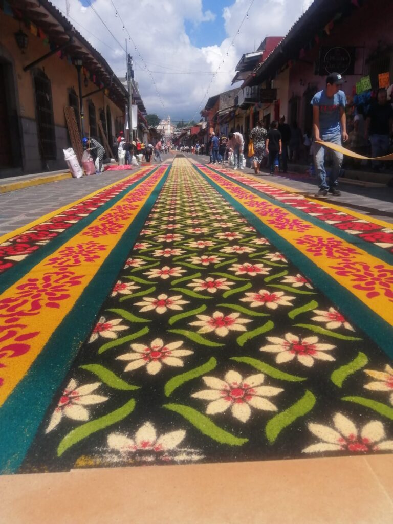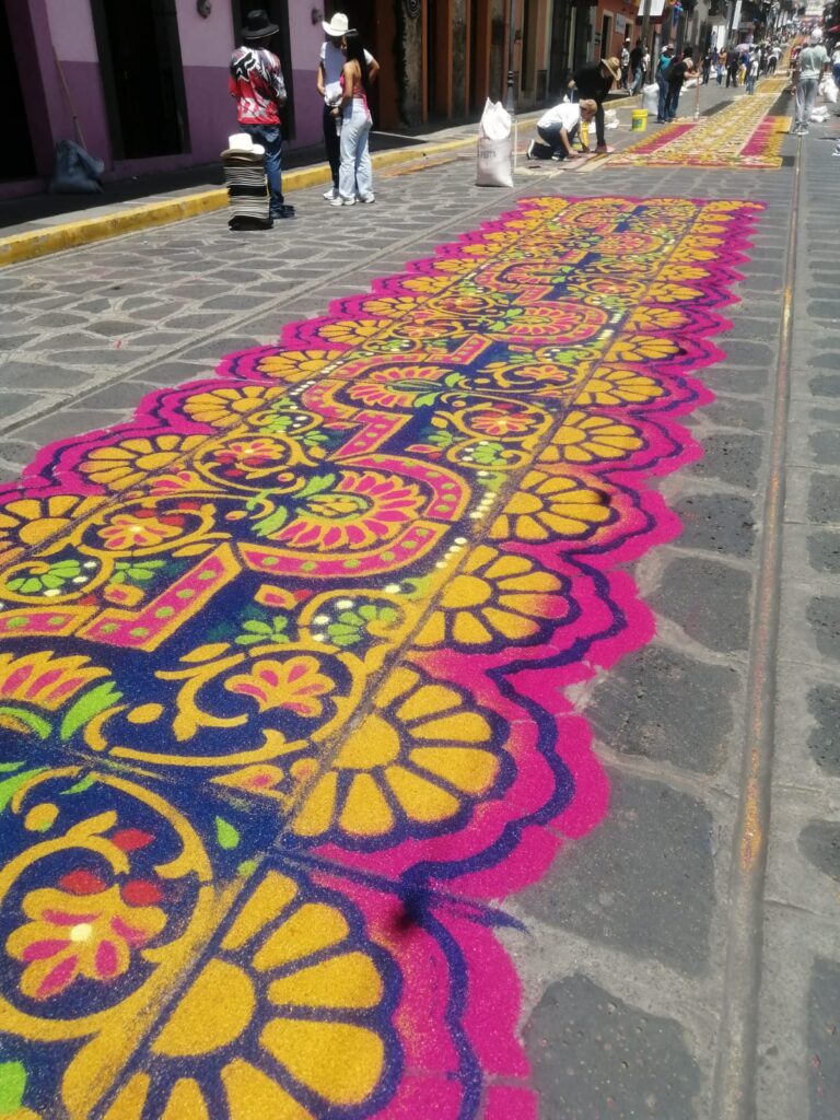 Con gran devoción, la gente explica que esto lo hacen con mucha fe y seguros de que a su santa le agradará, pues este tapete tan elaborado lo efectúan con mucho cariño.