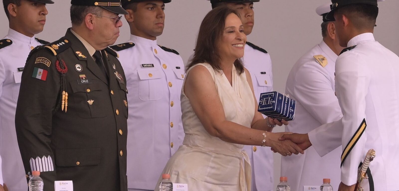Alvarado, Ver., viernes 25 de julio de 2025.- En acto solemne la gobernadora Rocío Nahle García asistió como madrina e invitada de honor del secretario de Marina, Raymundo Pedro Morales Ángeles, a la ceremonia de graduación de las generaciones 2020-2025 y 2021-2025 de la Heroica Escuela Naval Militar, ubicada en Antón Lizardo.