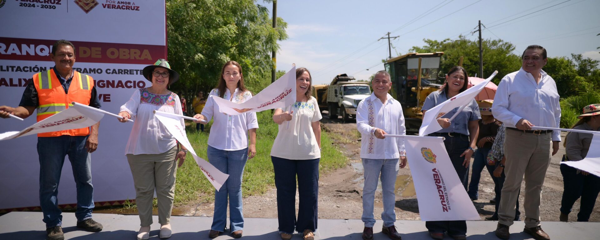 Tlalixcoyan, Ver., sábado 26 de julio de 2025.- La gobernadora Rocío Nahle García dio el banderazo de inicio a dos obras carreteras estratégicas, comprometidas durante su campaña y que fortalecerán la conectividad entre los municipios de Tlalixcoyan e Ignacio de la Llave, zonas con alta actividad agrícola y ganadera.
