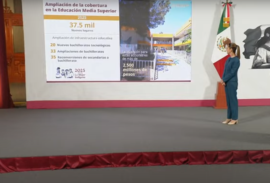 Por otro lado, se mencionó que el plan contempla la creación de 37,500 nuevos lugares en el sistema educativo mediante la construcción de 20 nuevas preparatorias, la ampliación de 33 planteles existentes y la reconversión de 35 secundarias para operar como bachilleratos en el turno vespertino.