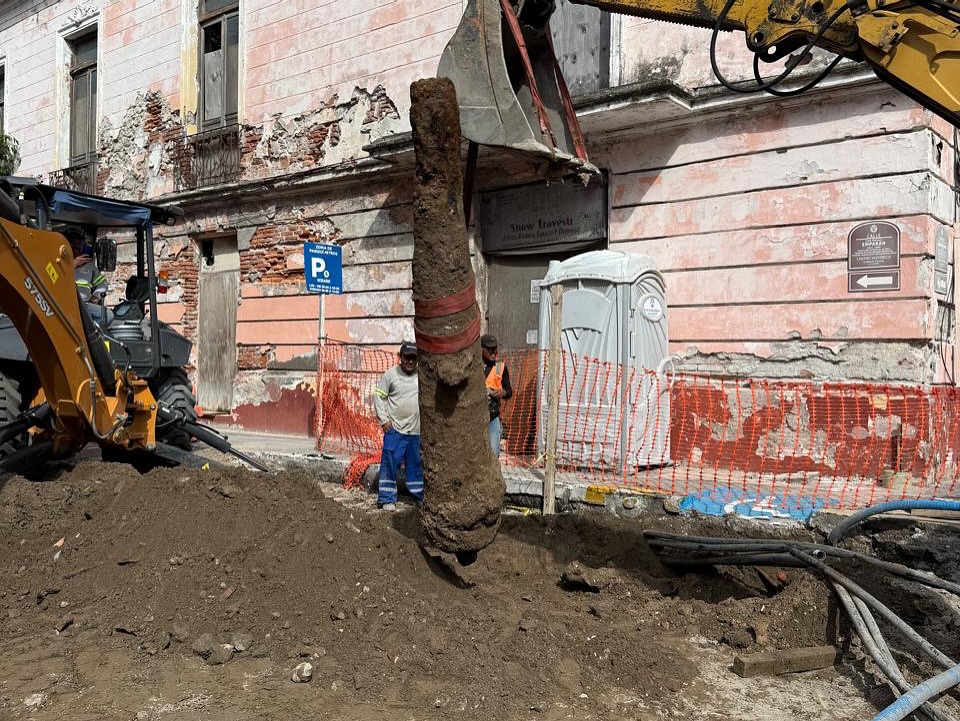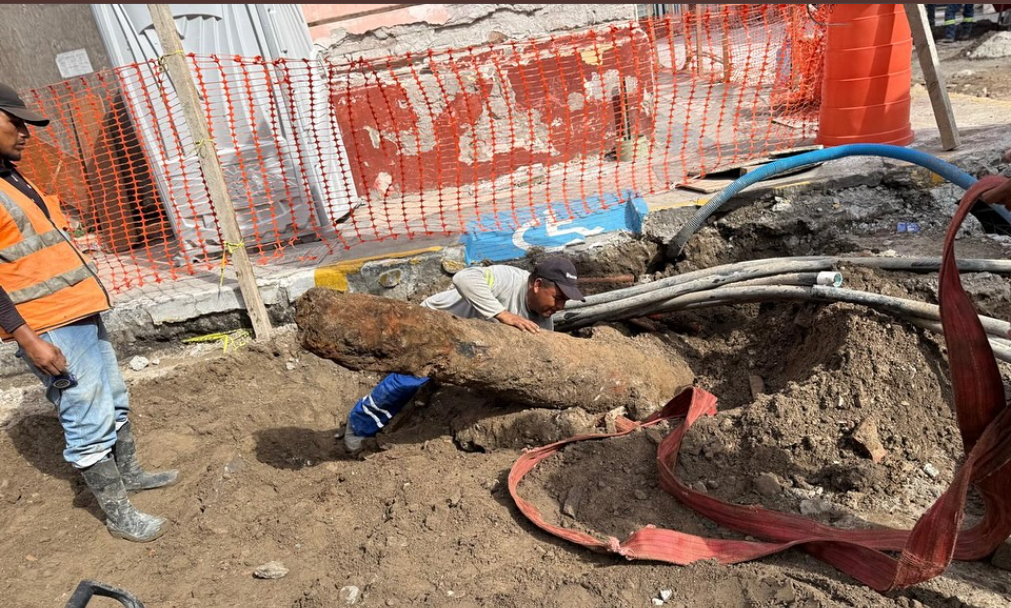 Hace unos momentos encontramos otro cañón, el segundo que hallamos en la obra del Centro Histórico, entre Independencia y Emparan. Ya lo tiene en su poder el INAH para su respectivo análisis