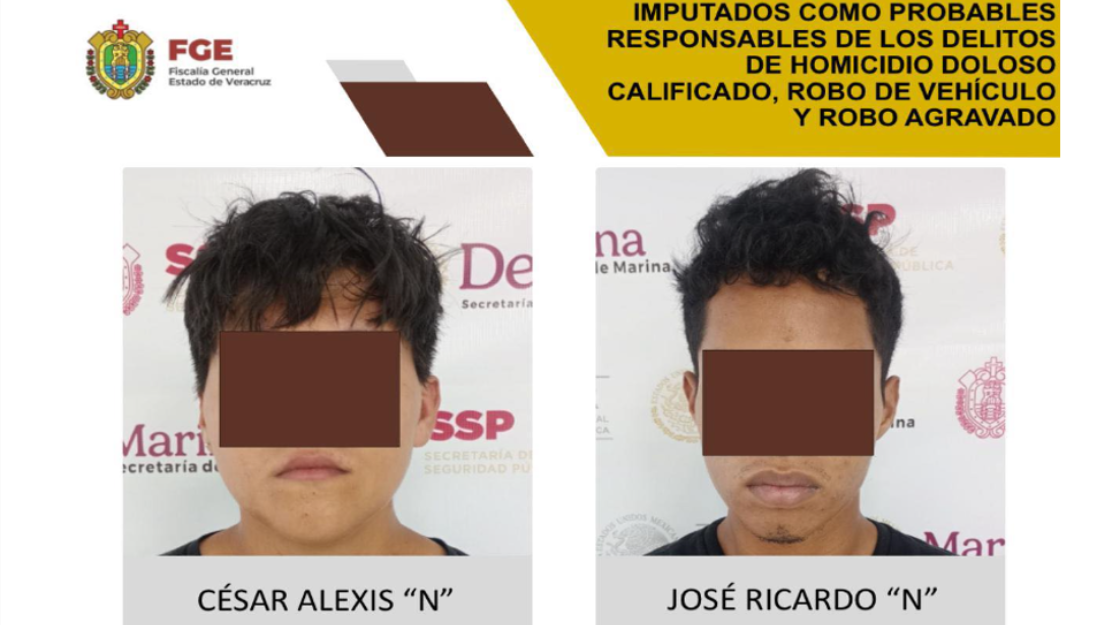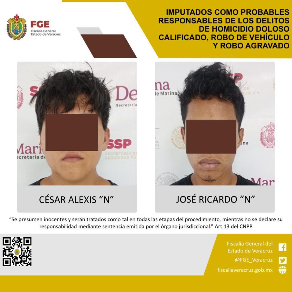 A través de la Fiscalía Regional Veracruz se realizó la imputación como probables responsables de los delitos de homicidio doloso calificado, robo de vehículo y robo agravado, en agravio de la víctima identificada con las iniciales R.R.R., de quien abusaron de su confianza para presuntamente cometer los delitos mencionados.}