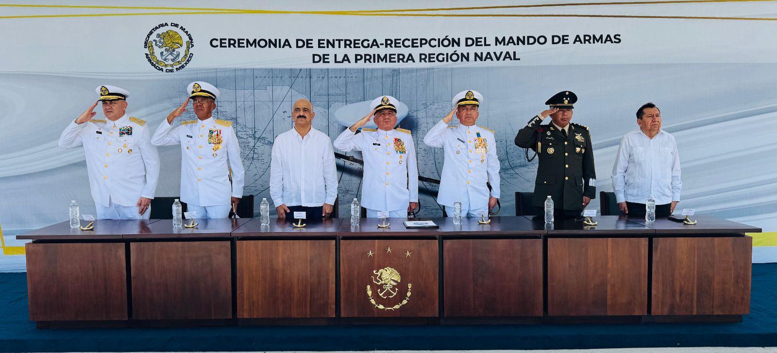 Veracruz, Ver.- La Secretaría de Marina, a través de la Armada de México, informa que, hoy se realizó la Entrega-Recepción del Mando de Armas de la Primera Región Naval, por acuerdo de la Comandanta Suprema de las Fuerzas Armadas, esto como parte de la rotación permanente del personal y con la finalidad de que la Secretaría de Marina-Armada de México continúe con el cumplimiento de su misión y atribuciones.