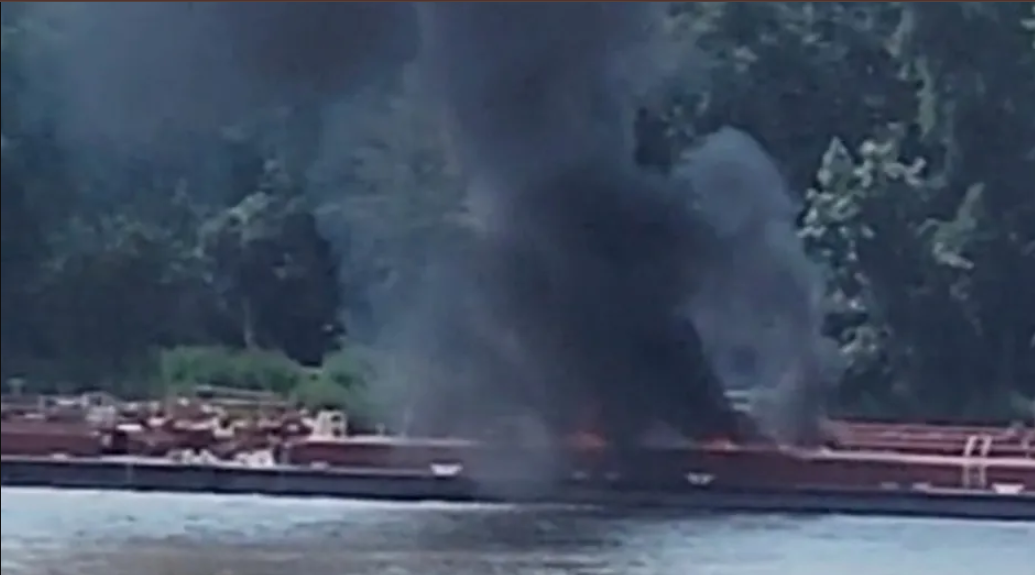 Un video proporcionado a KMOV-TV por un testigo muestra una columna de humo negro elevándose desde la barcaza.