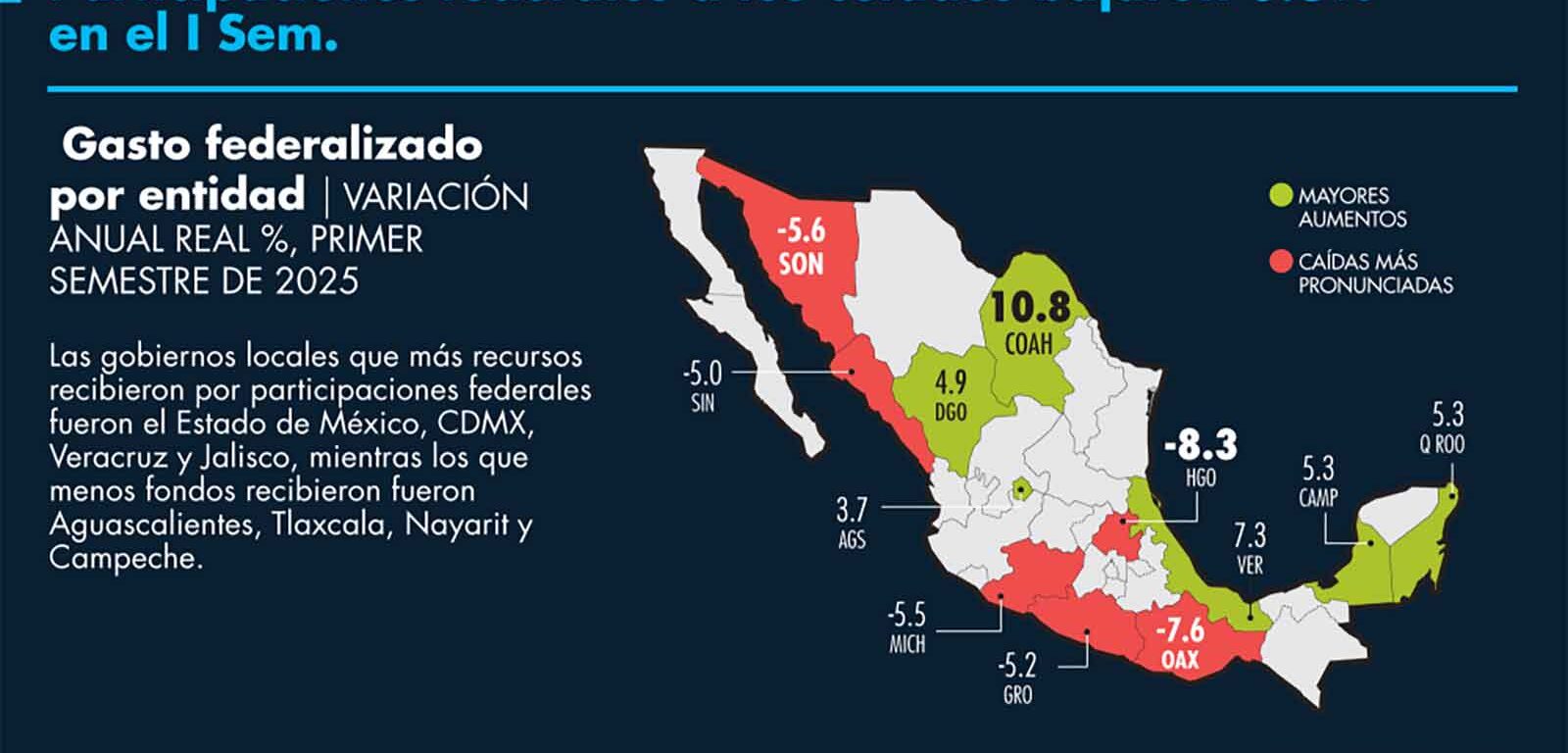Vamos a poner un contexto: mientras el promedio nacional mostró una caída en la llegada de los recursos federales, Veracruz registró un aumento del 7.3 %, sólo detrás de Coahuila, de acuerdo al informe sobre el gasto federalizado de la SHCP.
