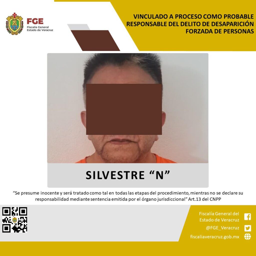 Xalapa, Ver., 28 de agosto de 2025.-La Fiscalía General del Estado, a través de la Fiscalía Especializada para la Atención de Denuncias por Personas Desaparecidas, obtuvo vinculación a proceso en contra de Silvestre “N”, ex director de Asuntos Internos de la Secretaría de Seguridad Pública, como probable responsable del delito de desaparición forzada de personas, cometido en agravio de la víctima identificada con las iniciales J.C.M.H.