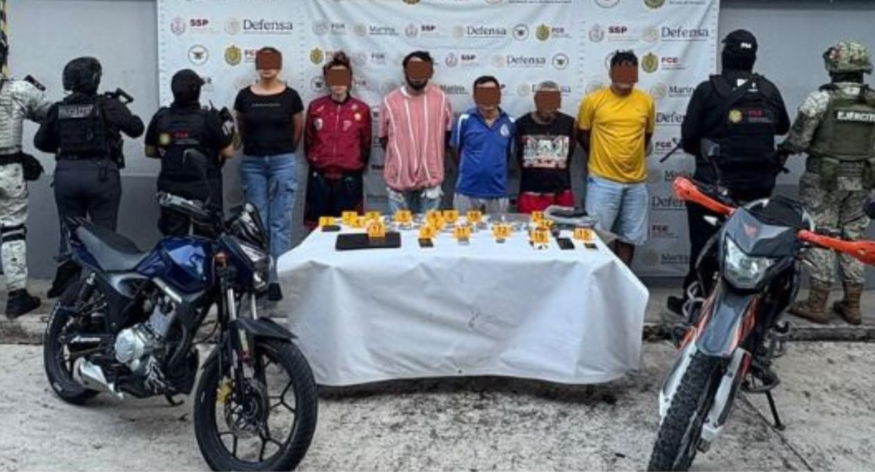 El dicho operativo se logró la detención en flagrancia de Jesús Adat “N”, Alejandro “N”, Omar “N”, Ahilin Yesenia “N”, Michell “N”, José Carlos “N” y una adolescente con identidad resguardada. Así como el aseguramiento de motocicletas, trituradoras, pipas, una identificación, celulares, hierba verde seca con características similares a las de la marihuana, básculas grameras y una laptop.