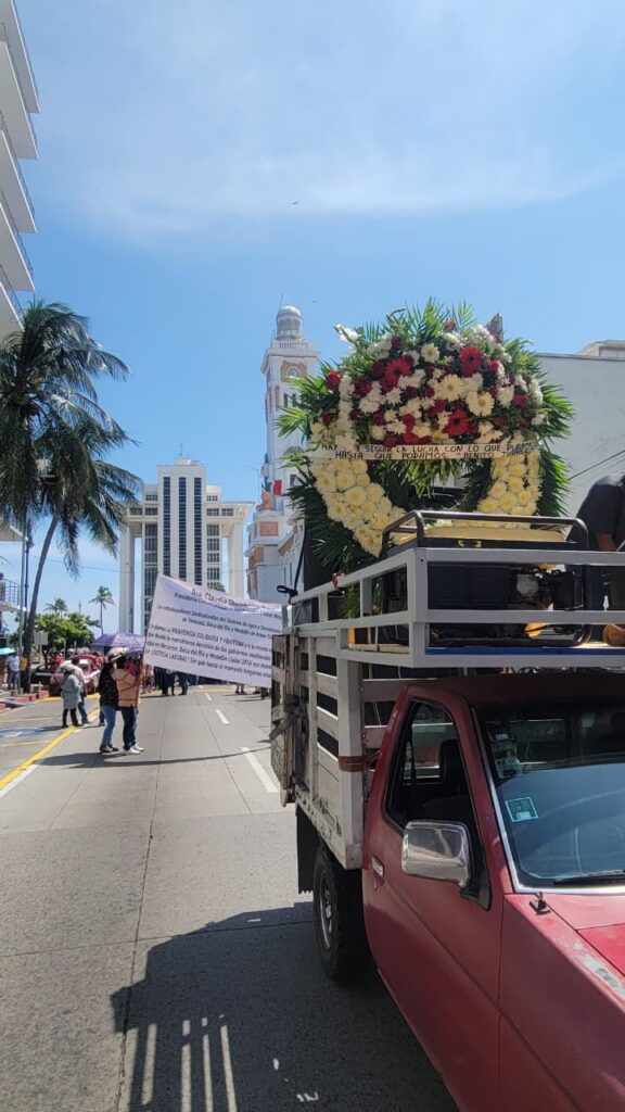 Acompañados por ciudadanos y miembros de organizaciones civiles, los manifestantes caminaron desde el Tranvía del Recuerdo con pancartas alusivas a su reclamo, avanzaron por calles del puerto de Veracruz y concluyeron en la Plaza de la República, donde colocaron una ofrenda floral en el Hemiciclo a Benito Juárez como símbolo de resistencia.