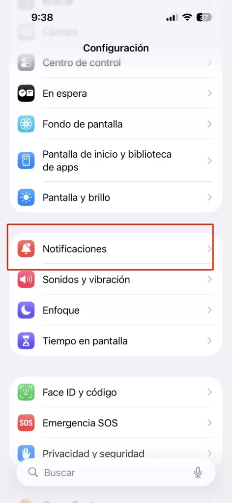 - Desliza hacia abajo para encontrar el apartado de “Notificaciones” y selecciónalo.