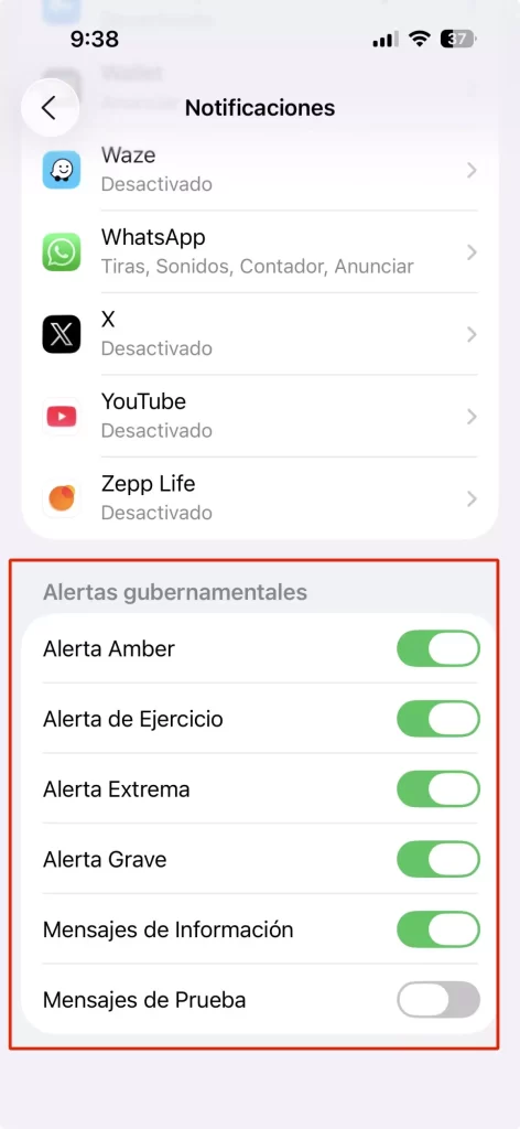 Cómo activar la alerta en iOS