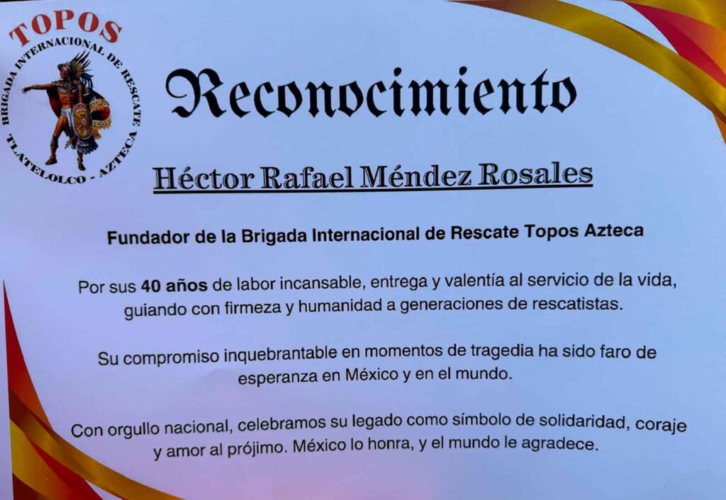 Hoy le hicieron un gran reconocimiento por sus 40 años de servicio en el salvamento de ciudadanos en nuestro país, y en muchos países que han solicitado su asesoría y apoyo , haciéndolo con una gran valentía, entusiasmo y sobre todo, por amor a México .