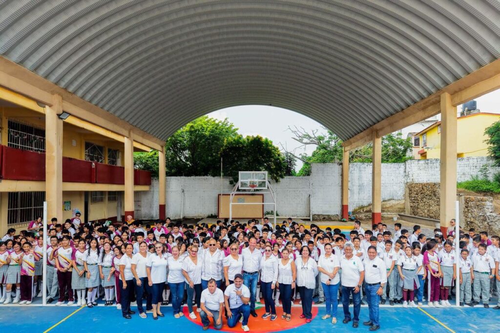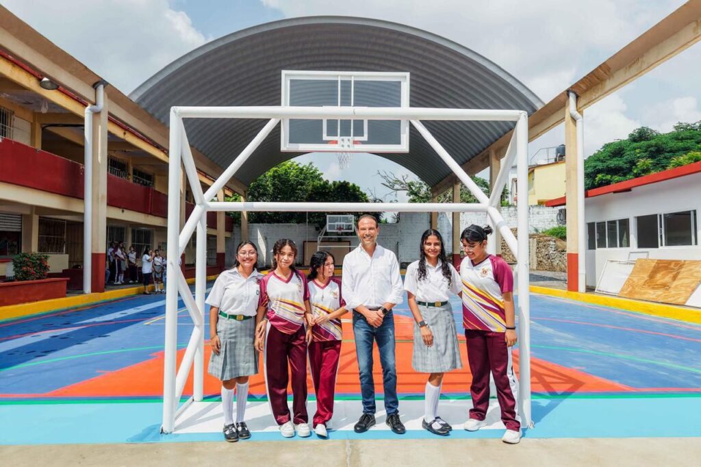 El alcalde fue recibido y acompañado por directivos, maestros y alumnos para recorrer la obra que representa un impulso al deporte, la convivencia y los buenos hábitos de salud dentro del plantel.