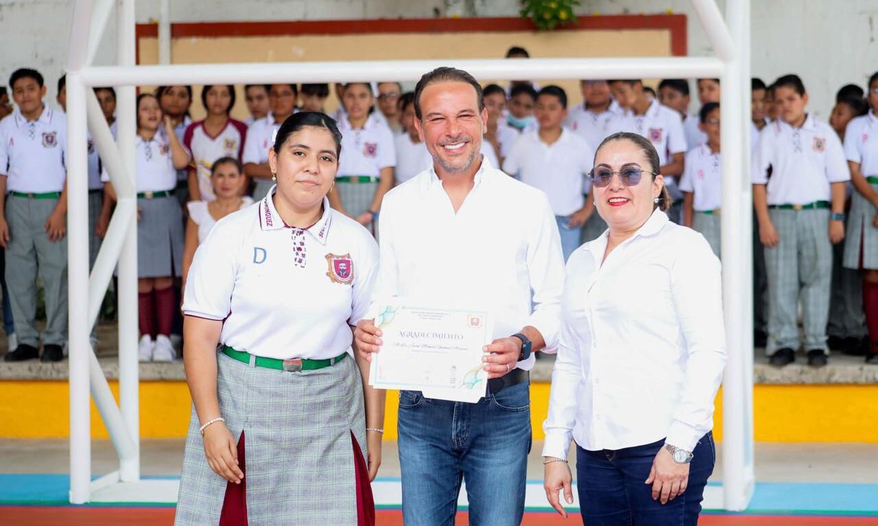 La comunidad de la Secundaria General 6 Belisario Domínguez, agradeció al alcalde de Boca del Río, Juan Manuel Unánue Abascal, por la rehabilitación de su cancha de usos múltiples, logrando así un espacio digno para el uso y disfrute de estudiantes, personal docente y padres de familia.