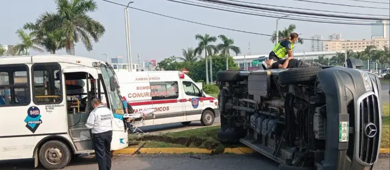 Este jueves por la mañana se registró la volcadura de una camioneta tipo Van tras ser impactada por un camión de pasaje en Boca del Río.