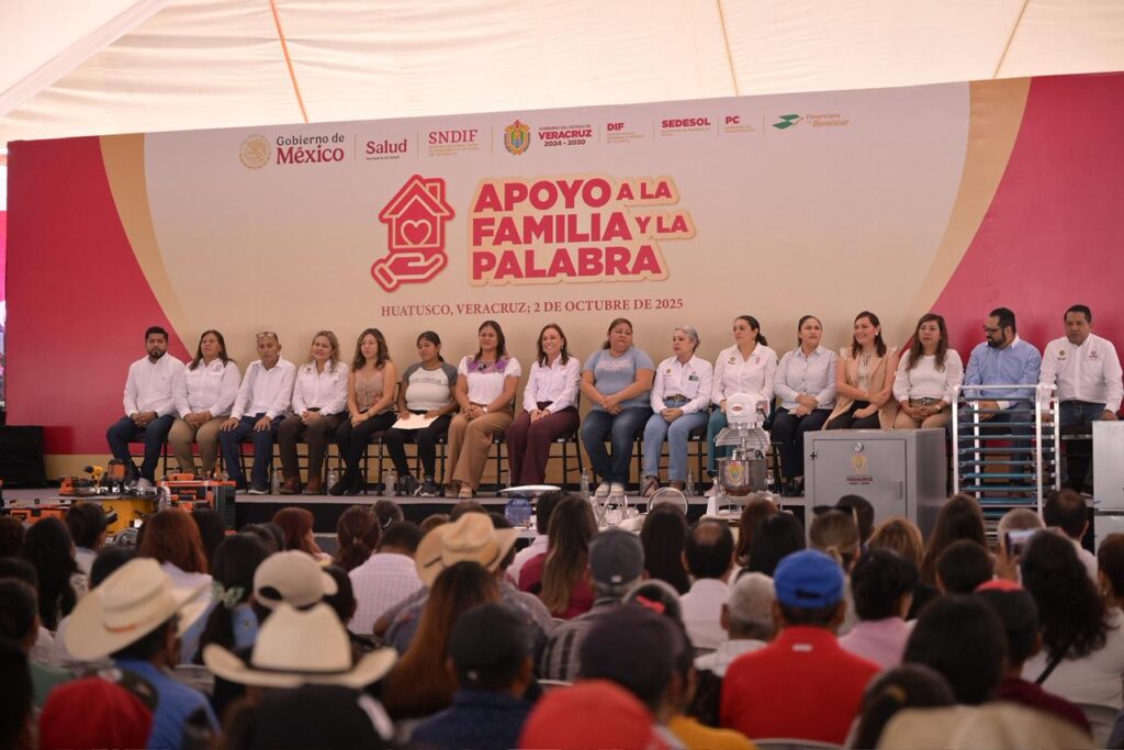 Huatusco, Ver., jueves 02 de octubre de 2025.- En un encuentro con pobladores de 30 municipios, la gobernadora Rocío Nahle García encabezó la entrega conjunta de los programas Apoyo a la Familia y Apoyo a la Palabra – Plan México, estrategias que reafirman el compromiso de la Cuarta Transformación con los veracruzanos al facilitar recursos sin intermediarios para impulsar el bienestar y la productividad.