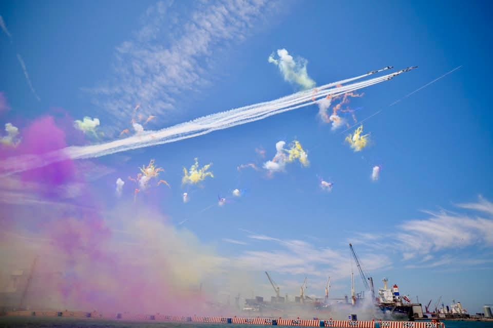 - En el puerto Cuatro Veces Heroico, mostró su poder aéreo, marítimo y anfibio.
