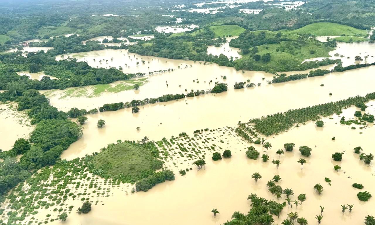 Xalapa, Ver., jueves 09 de octubre de 2025.- La gobernadora Rocío Nahle García realizó un sobrevuelo por las zonas afectadas por las intensas lluvias en la región norte del estado, para supervisar los trabajos de atención a la población y verificar el estado de ríos y vialidades.