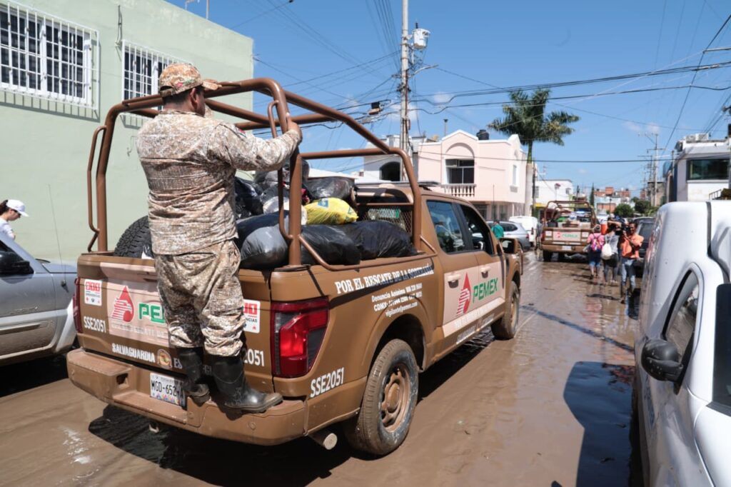 • Pemex reabastece gasolineras en la zona para mantener las labores de auxilio y traslado.