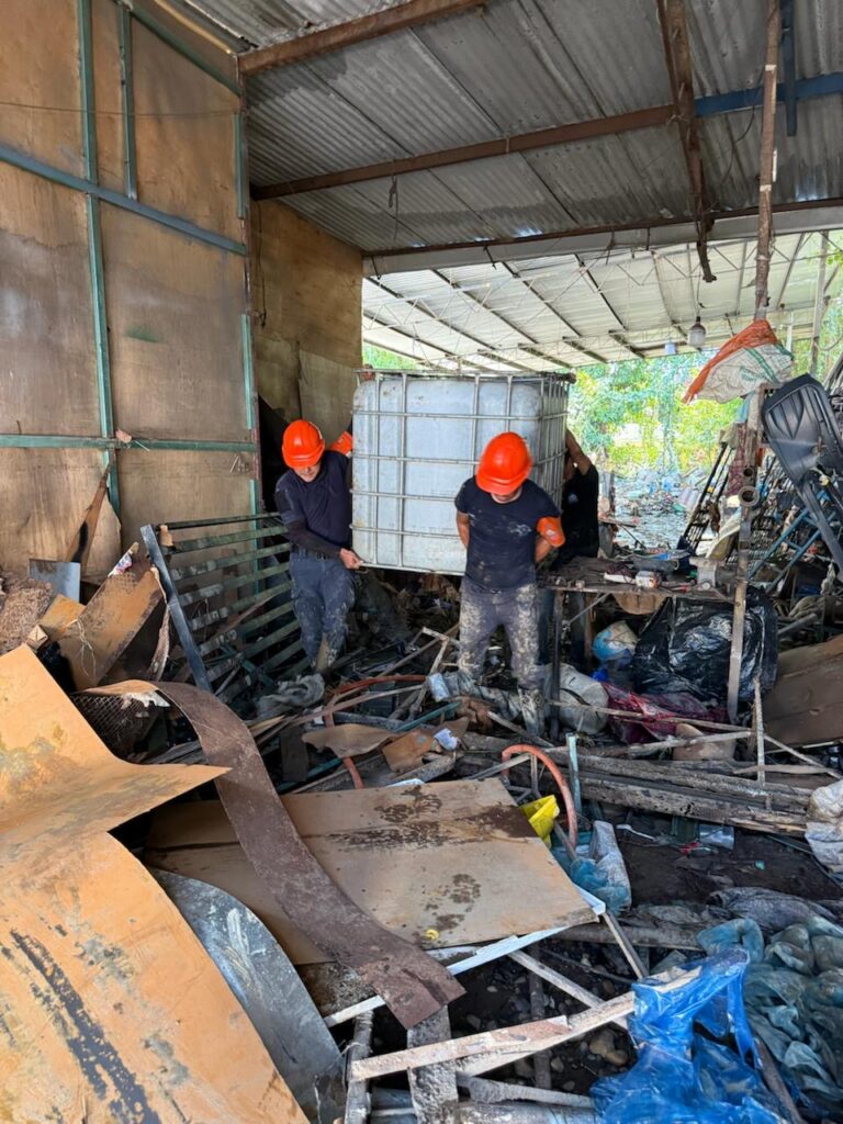 Entre las labores de limpieza realizadas, se apoyó  en la avenida de la Rivera, en el municipio de Gutiérrez Zamora, debido a la afectación provocada por la crecida del río Tecolutla, contribuyendo a la recuperación de espacios públicos y al restablecimiento de la movilidad en la zona.