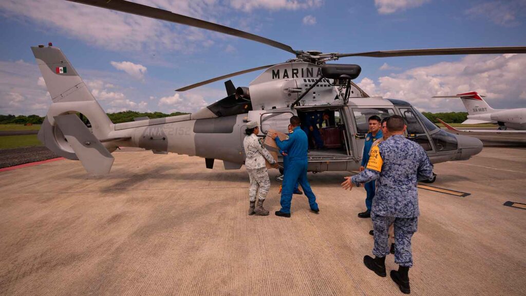 Asimismo, continúa el puente aéreo hacia Texcatepec, Zacualpan, Ilamatlán, Zontecomatlán e Ixhuatlán de Madero; al respecto la Mandataria informó que actualmente 12 aeronaves participan en estas operaciones, gracias a la coordinación de las secretarías de Marina, Defensa Nacional, el Gobierno del Estado, Telmex, Pemex y del Gobierno de Tamaulipas.