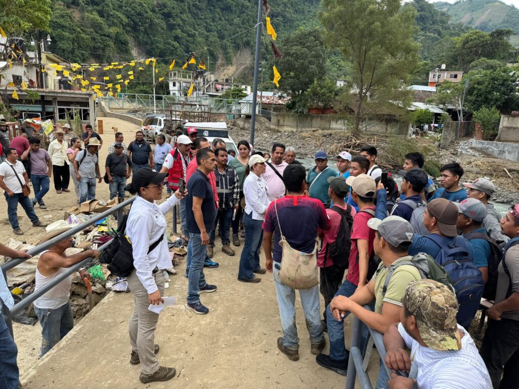 En la comunidad El Naranjal, en Tlachichilco, sostuvo un encuentro cercano con las familias, a quienes aseguró que no están solas, y que el Gobierno del Estado mantiene un puente aéreo permanente desde Poza Rica para hacer llegar víveres, personal médico y maquinaria destinada a la rehabilitación de caminos y servicios básicos.