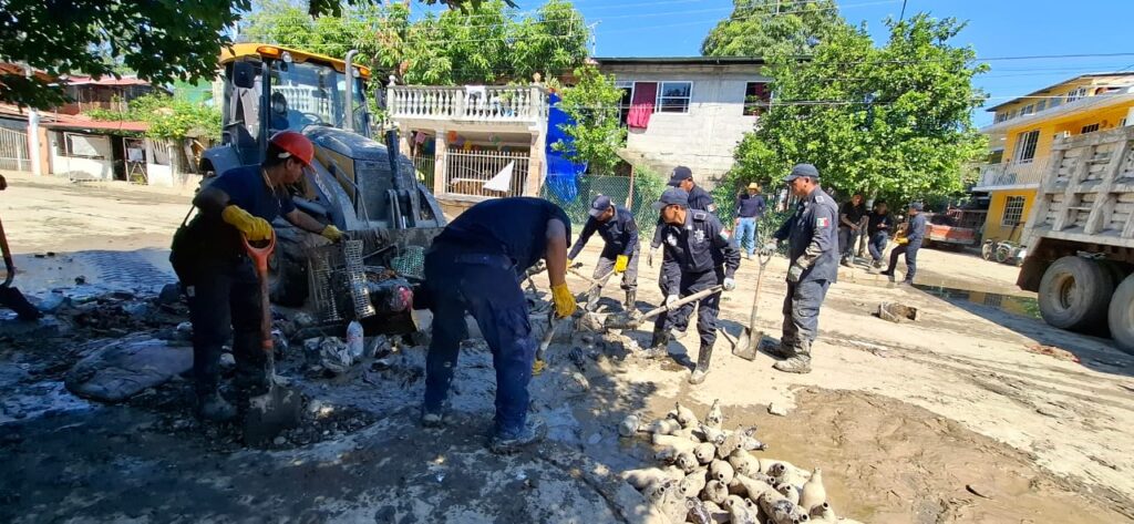 Además de 708 kits de limpieza distribuidos, la limpieza de mil 005 viviendas y negocios, el retiro de 2 mil 886 metros cúbicos de residuos en calles y 50 coordinaciones de traslado y distribución.