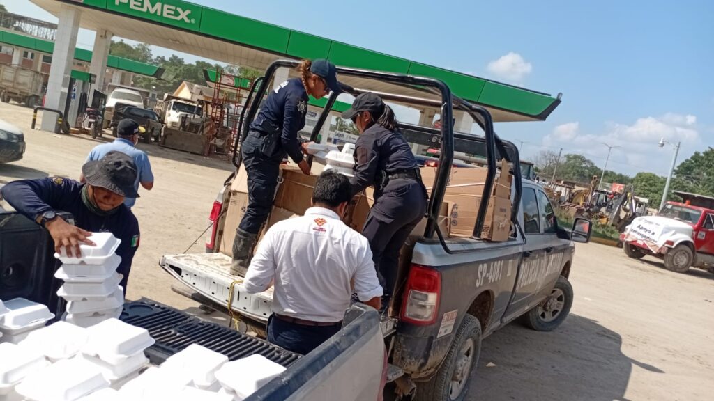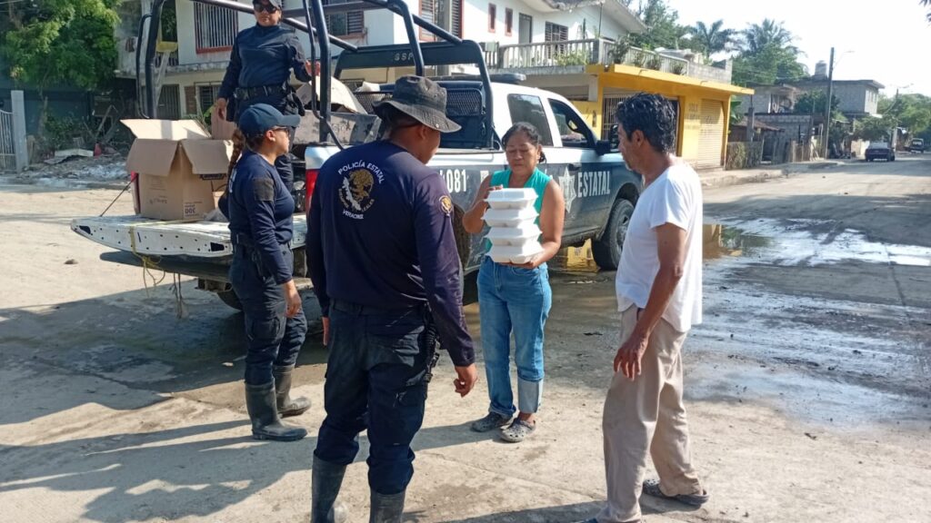 Poza Rica, Ver., martes 21 de octubre de 2025.- En las últimas 24 horas, a través del Plan Tajín de la Secretaría de Seguridad Pública (SSP), se han distribuido 2 mil 500 raciones de comida caliente y 621 paquetes alimentarios a familias damnificadas por la vaguada y la depresión tropical 90E en la zona norte del estado.