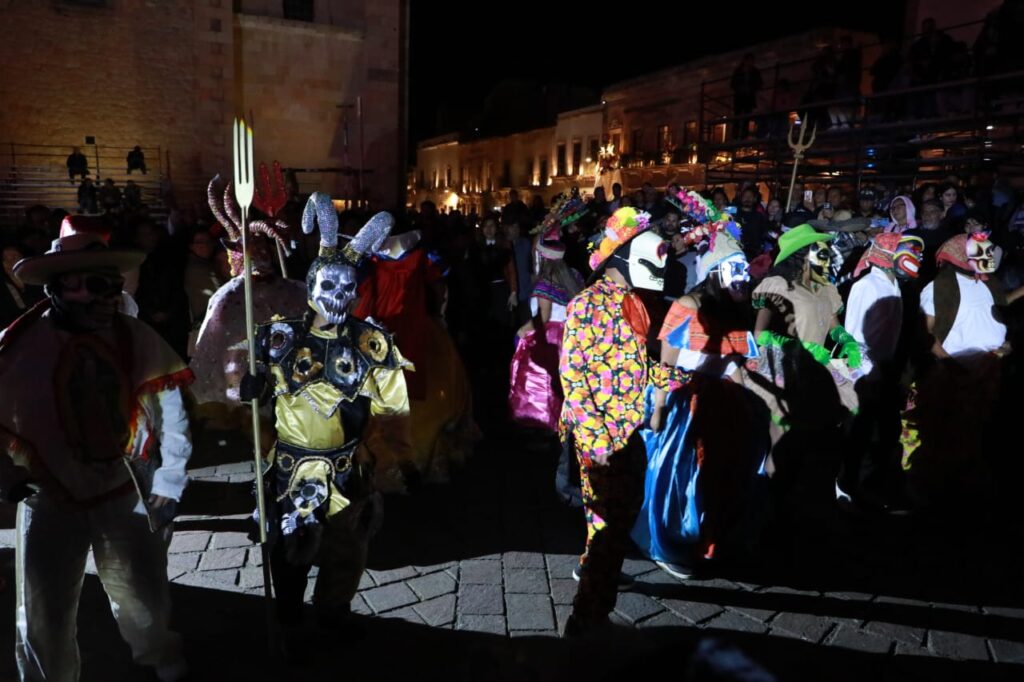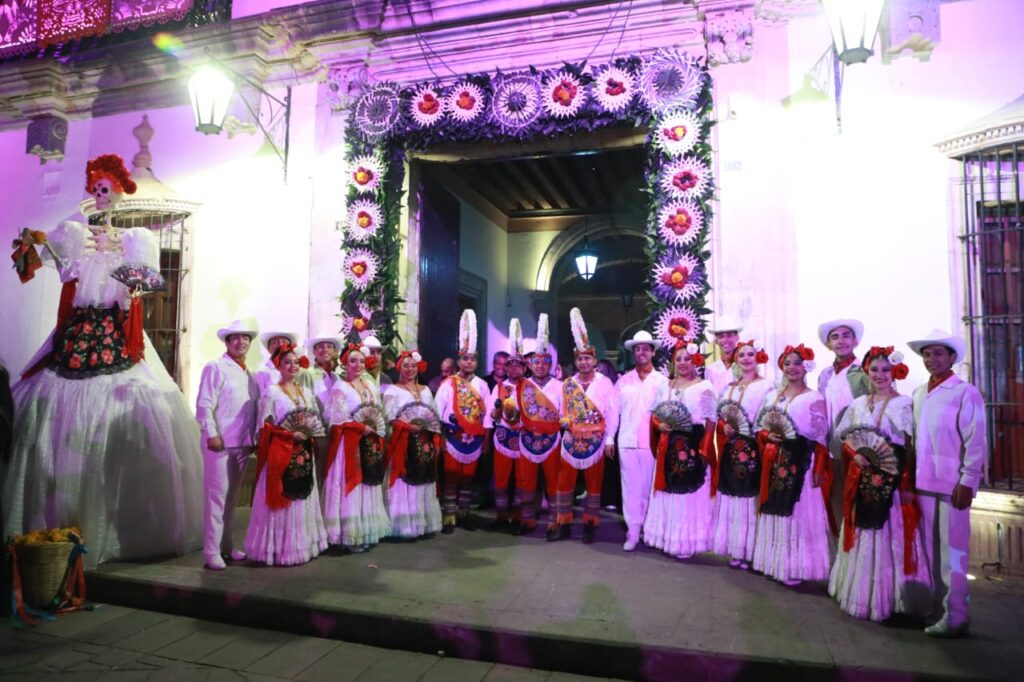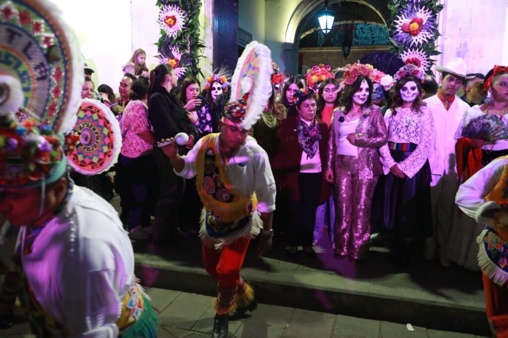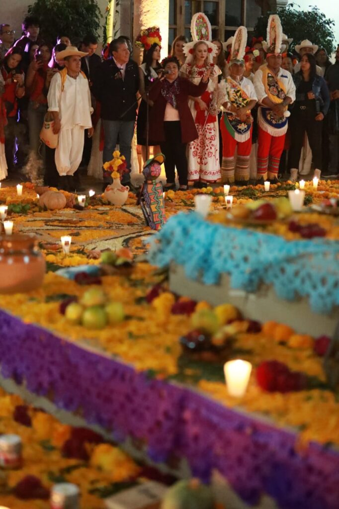 Las autoridades encabezaron el Recorrido de Arcos, Fachadas y Espacios del Centro Histórico, decorados con motivos alusivos a la celebración, tapetes de aserrín multicolor y altares dedicados a los fieles difuntos. Durante el trayecto, la Banda Sinfónica del Estado interpretó La Bamba y la Marcha de Zacatecas, emblemas musicales de esta unión cultural.