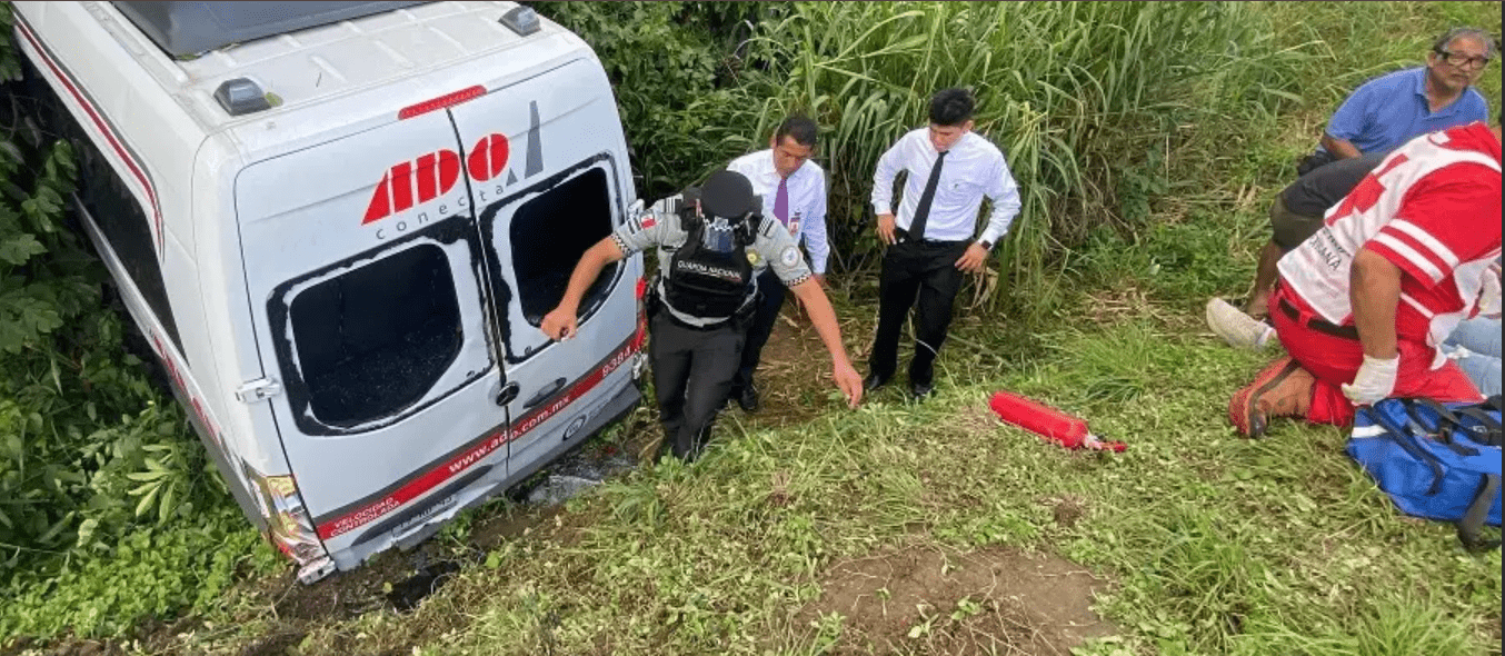 Un vehículo tipo Sprinter de la línea ADO sufrió un accidente la mañana de este jueves sobre la carretera Coatzacoalcos–Villahermosa, a la altura del kilómetro 26, pasando Madisa y antes de llegar al Paralelo.