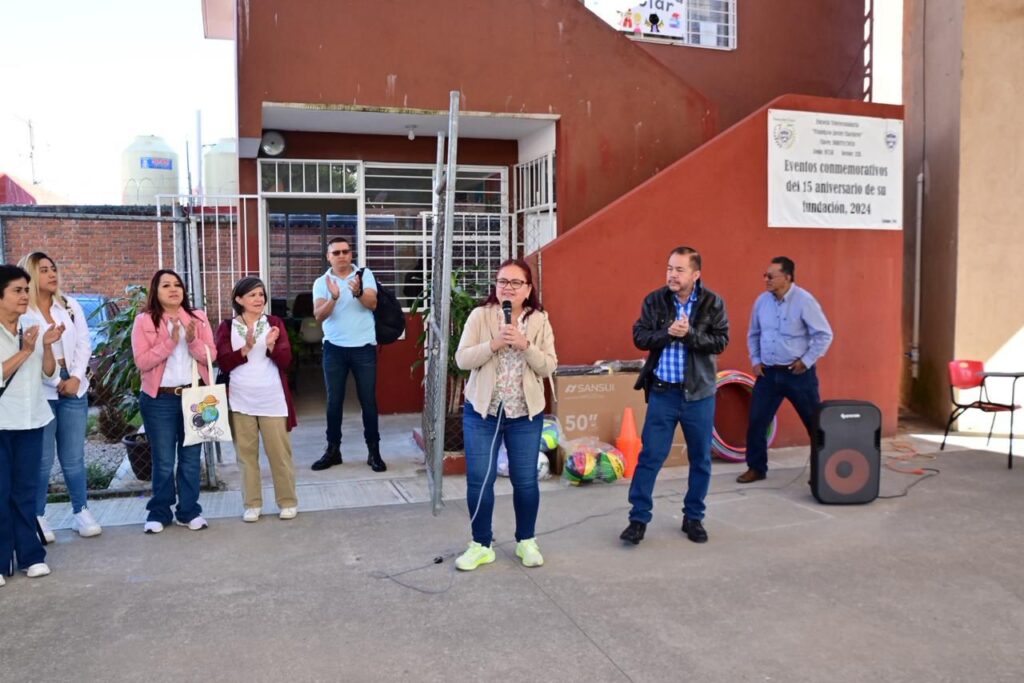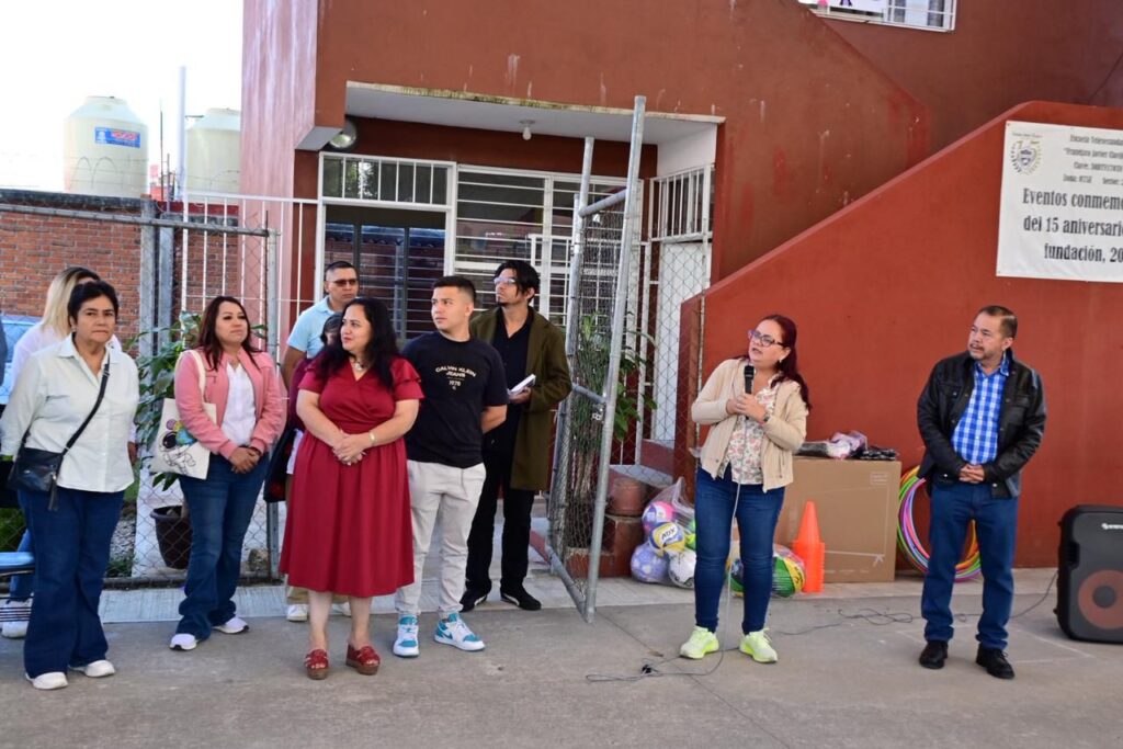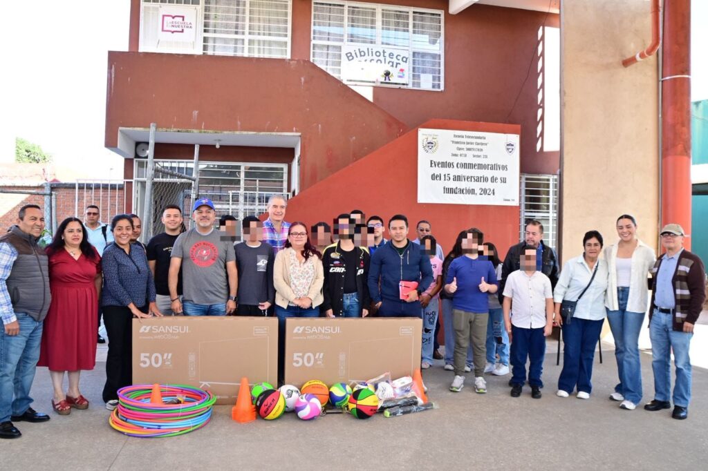 Inició en la Escuela Telesecundaria Francisco Javier Clavijero “donde hicimos entrega de equipo audiovisual y deportivo solicitado por el director de la escuela y la sociedad de padres de familia”.