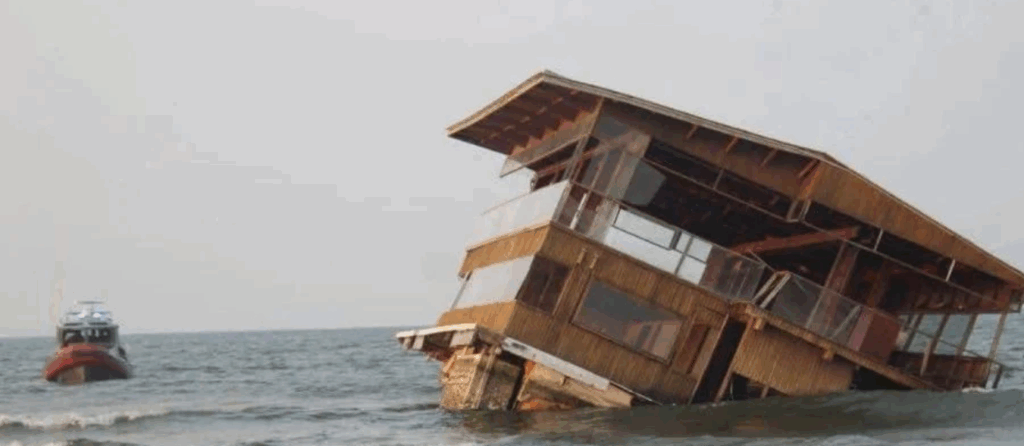 Las imágenes compartidas en redes sociales del restaurante llevado por la corriente le dieron la vuelta al mundo y el agua lo llevó hasta costas de Alvarado, Coatzacoalcos y Catemaco.