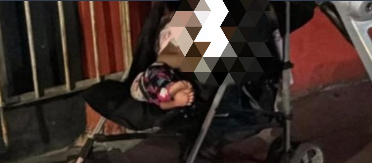 Según los primeros reportes, la menor fue encontrada en una carreola frente al local, situación que generó la denuncia inmediata de ciudadanos que se percataron de la escena.