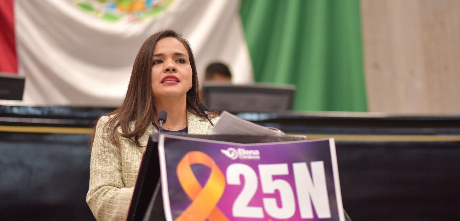 Xalapa, Ver., 20 de noviembre de 2025.- Vivir sin violencia debe ser una causa diaria, continua y sostenida, fue el llamado que hizo la diputada María Elena Córdova Molina desde la tribuna en su participación durante la décimaprimera sesión ordinaria, en el marco de la conmemoración del Día Internacional de la Eliminación de la Violencia contra la Mujer (25 de noviembre).