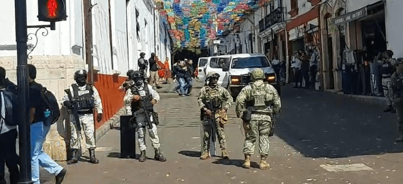 Los elementos se encontraban en la Casa de la Cultura, ubicada en pleno centro de Uruapan, a unos metros de donde fue asesinado el presidente municipal por una célula que conformó Jorge Armando ‘N’, identificado como El Licenciado, quien presionó a los jóvenes sicarios para que mataran al político “a como diera lugar”.