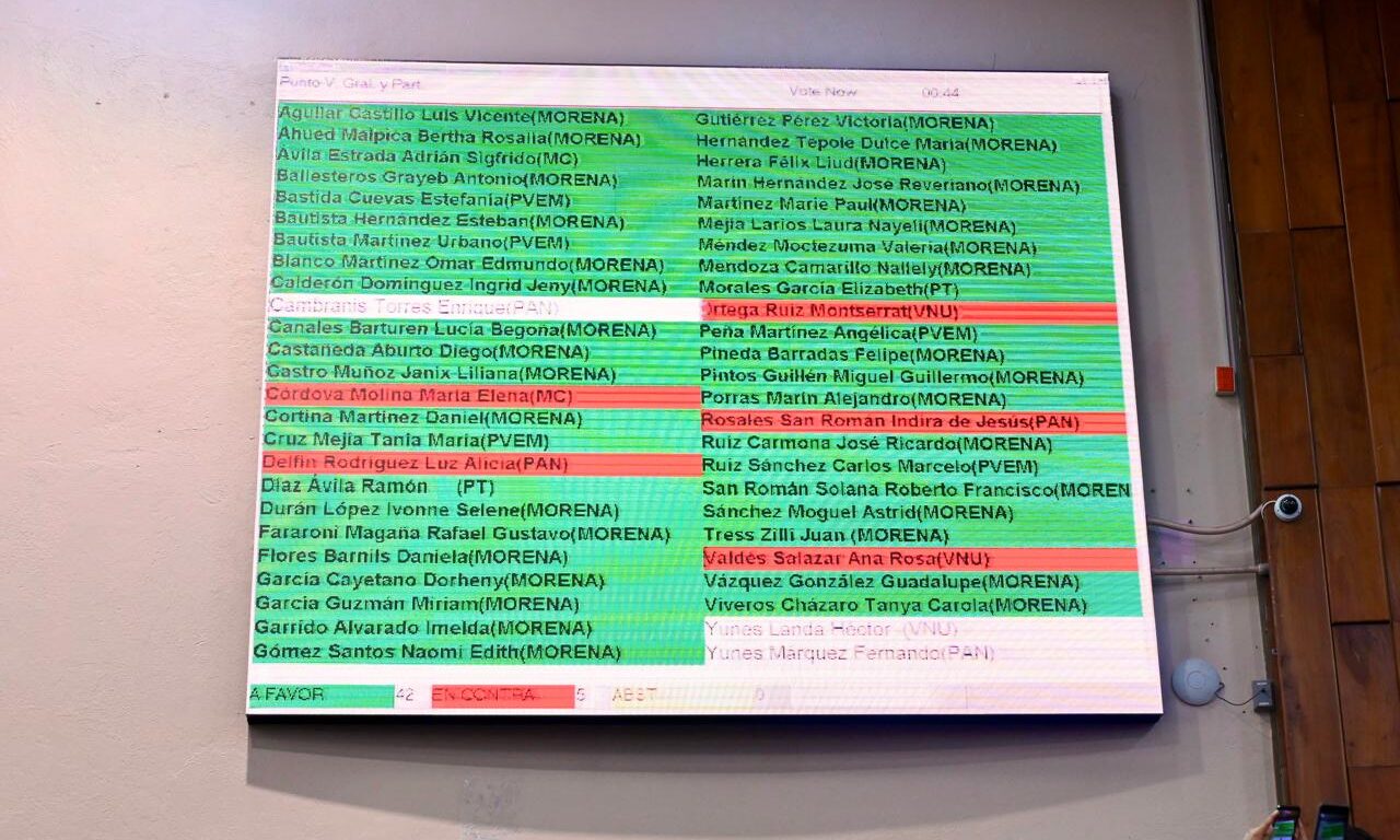 Xalapa, Ver., 25 de noviembre de 2025.- Con 42 votos a favor, cinco en contra y cero abstenciones, el Pleno de la LXVII Legislatura del estado aprobó el dictamen por el que se reforman diversas disposiciones de la Constitución Política de Veracruz relativas al procedimiento para la designación de la persona titular de la Fiscalía General del Estado (FGE) y la duración del periodo en el cargo.