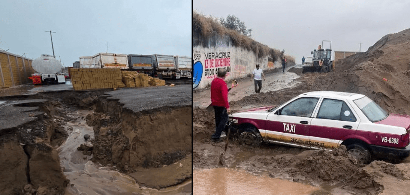 Este viernes se registró un deslave en el camino que conduce al kilómetro 13.5 del puerto de Veracruz, a la altura del acceso a Chedraui Ponti, donde se realizan trabajos de obra.