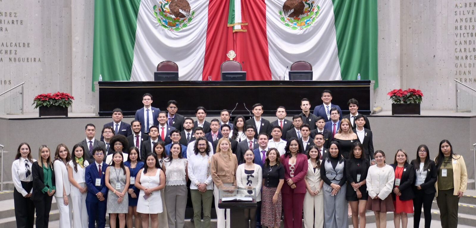 También a Getsemaní Rodríguez Barradas, Axel Jael Romero Guerra, Romina Santos Hernández, Karla Sebastián Gabriel, Elías Habid Soto Macín, Felipe de Jesús Tecalco Jáuregui, Yanelle Tshiboyi, Ari Jafet Velasco Castillo y a Luis Alexei Vidal Colunga, quienes desde la tribuna presentaron sus propuestas, como también lo hicieron el y las integrantes de la Mesa Directiva.