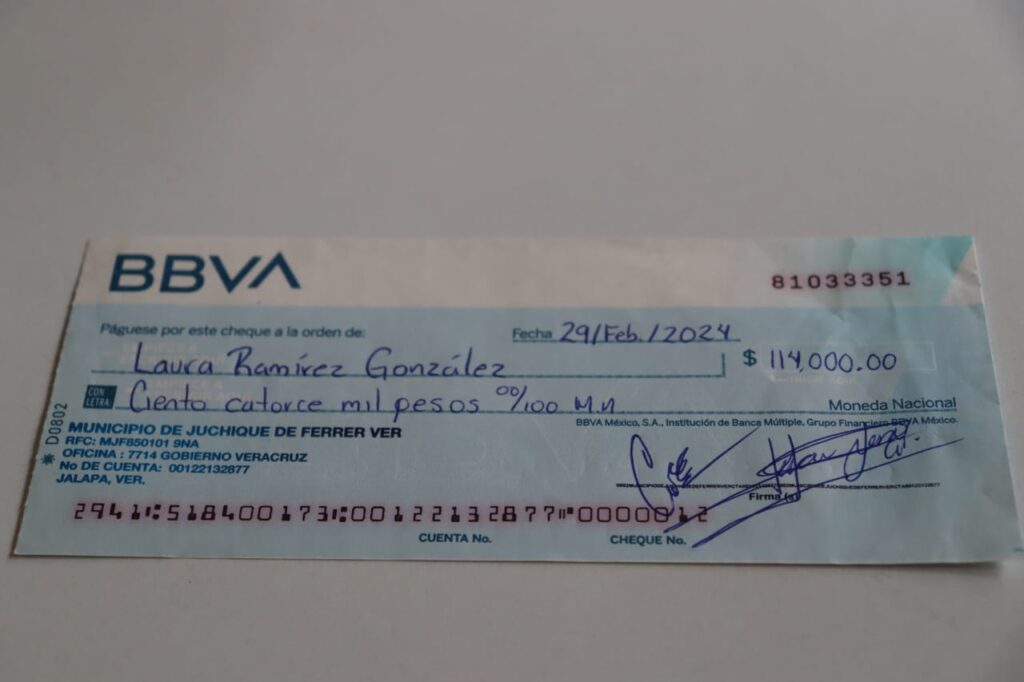 La proveedora mostró un cheque por 114 mil pesos, supuestamente expedido por el propio alcalde, mismo que nunca pudo cobrar. Señaló que cuenta además con audios y mensajes donde Cruz Cuevas promete depositar el pago “mañana”, “la próxima semana” o “el día 3”, compromisos que nunca fueron cumplidos.