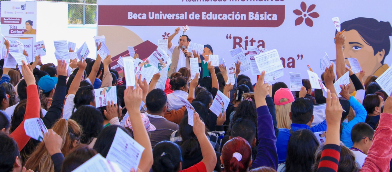 La Beca Rita Cetina busca ampliar la cobertura universal en el nivel básico, ya que actualmente el apoyo se entrega a estudiantes de secundarias públicas, con un monto de 1,900 pesos bimestrales por familia, más 700 pesos adicionales por cada alumno extra inscrito.
